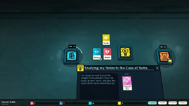 On my second run, I really managed to get things up and running - the game gives you the option to play as a physician the second time around, who has a job that isn’t terrible and that he can’t be fired from. His ability to poop out regular money leaves him insulated from sickness, so that’s a step forward! I started my new cult in earnest, trying to figure out what to do with my newfound cult.