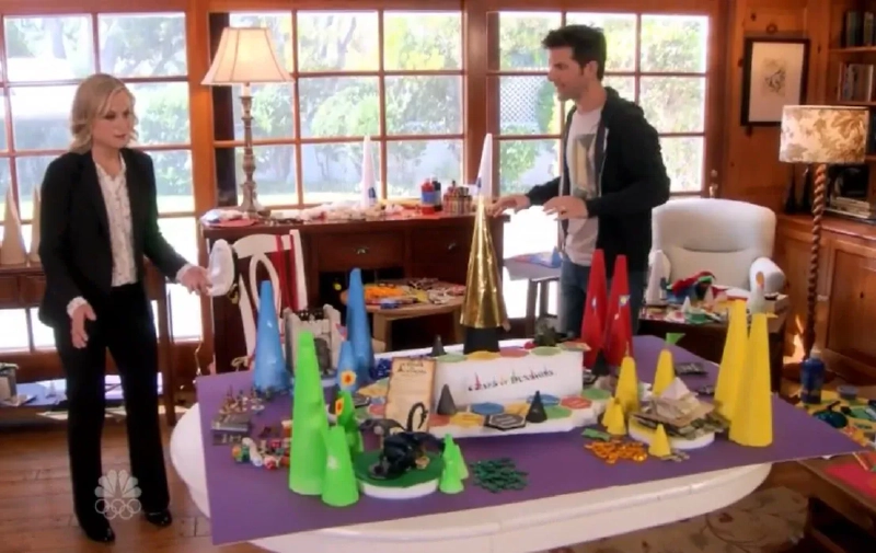 It’s an ongoing joke on Parks and Recreation that Ben Wyatt, a boring accountant, loves board games. He’s nationally ranked at Settlers of Catan, and in his spare time he’s concocted game called “The Cones of Dunshire”, a game that takes several hours to play, involves mountains of dice, and has a variety of magical effects and win conditions, and is, effectively, a parody of the sorts of games that tend to top the BGG Top 100.