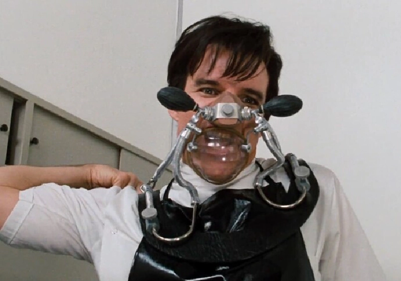 Seymour pulls a gun on him and, in the excitement, the nitrous contraption breaks, suffocating the dentist. A totally bloodless kill for Seymour!