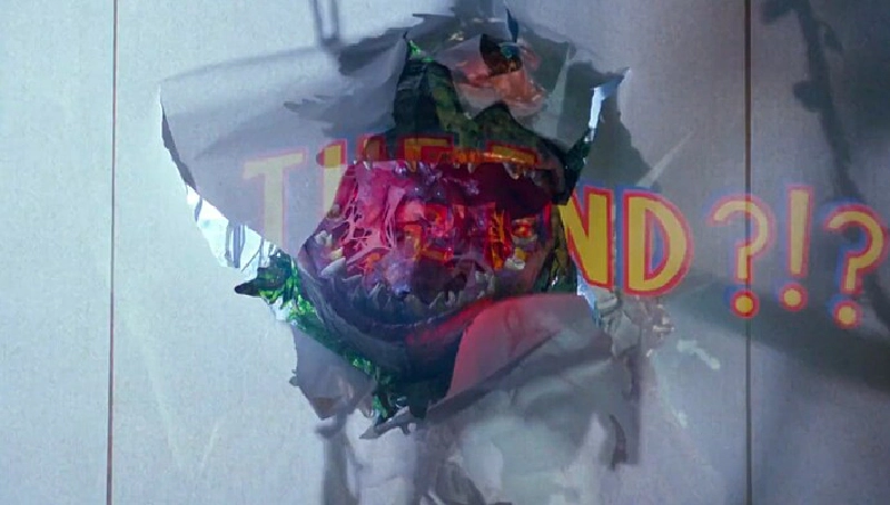 And that’s it, after about 10 minutes of the plants laughing and smashing around, the movie ends with them tearing out of the film screen to eat you, the audience.