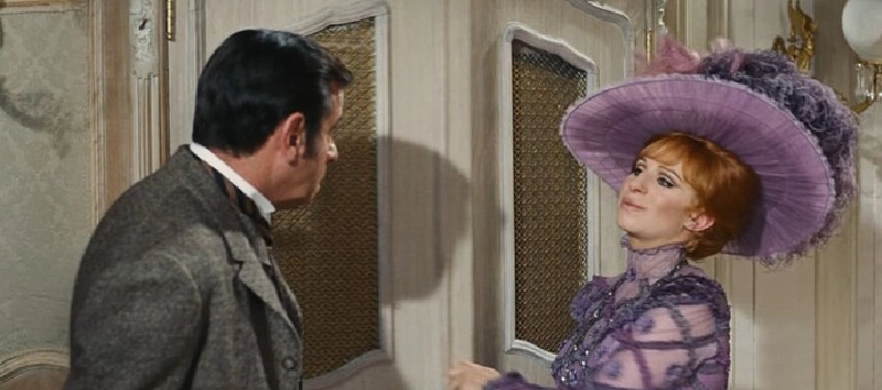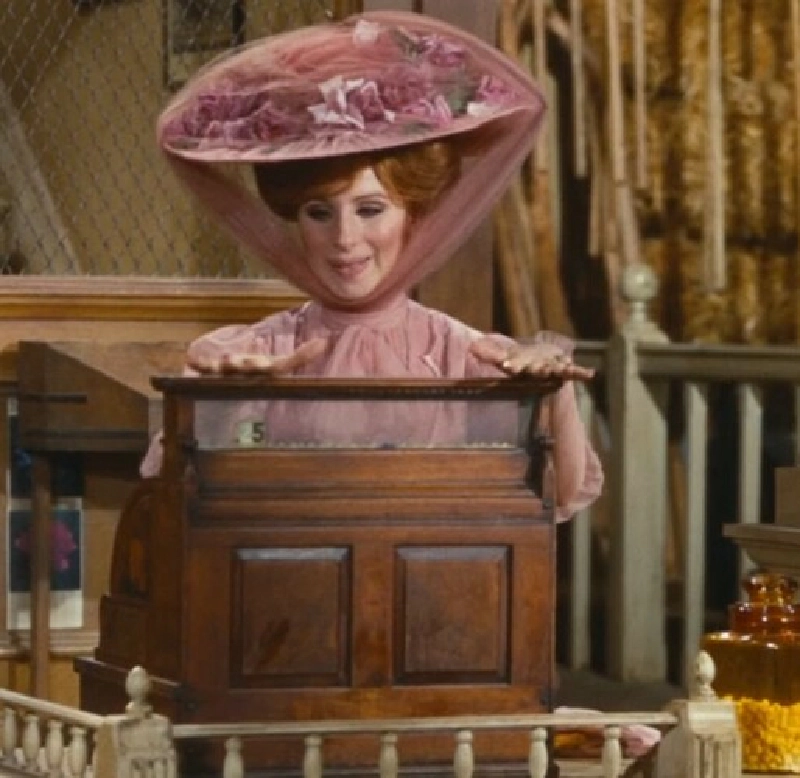 The first musical number, Call on Dolly/Just Leave Everything to Me, is good: it’s a high-energy dynamic musical number introducing Dolly, this domineering, dishonest, fixer of a woman with a business card advertising her services for any possible situation you might encounter. Also: not super familiar with Barbra Streisand’s ouvre, I think the most I’ve actually seen her in one place at one time is in the music video Barbra Streisand.