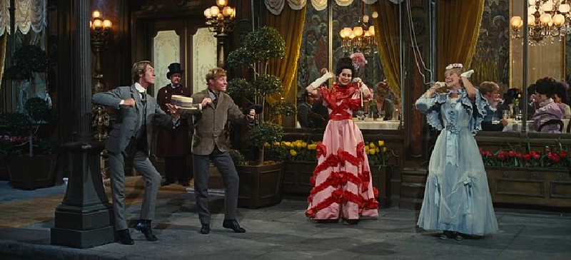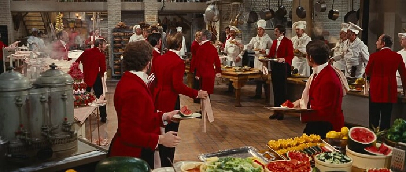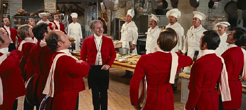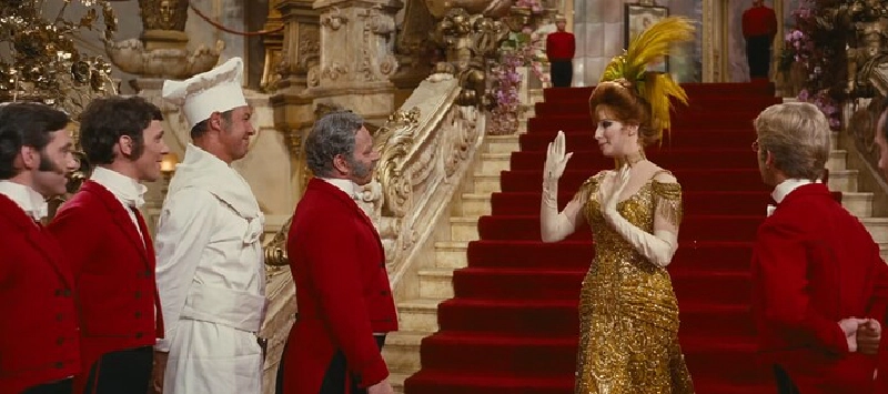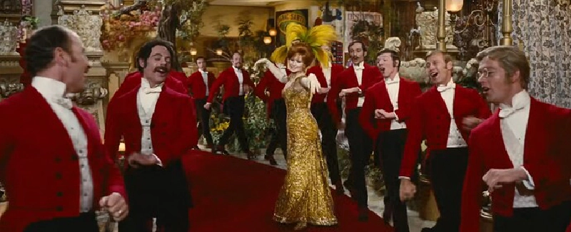 Dolly strides into the restaurant with Hello, Dolly, the second major musical number devoted to the concept that this restaurant is very excited by a hungry woman.