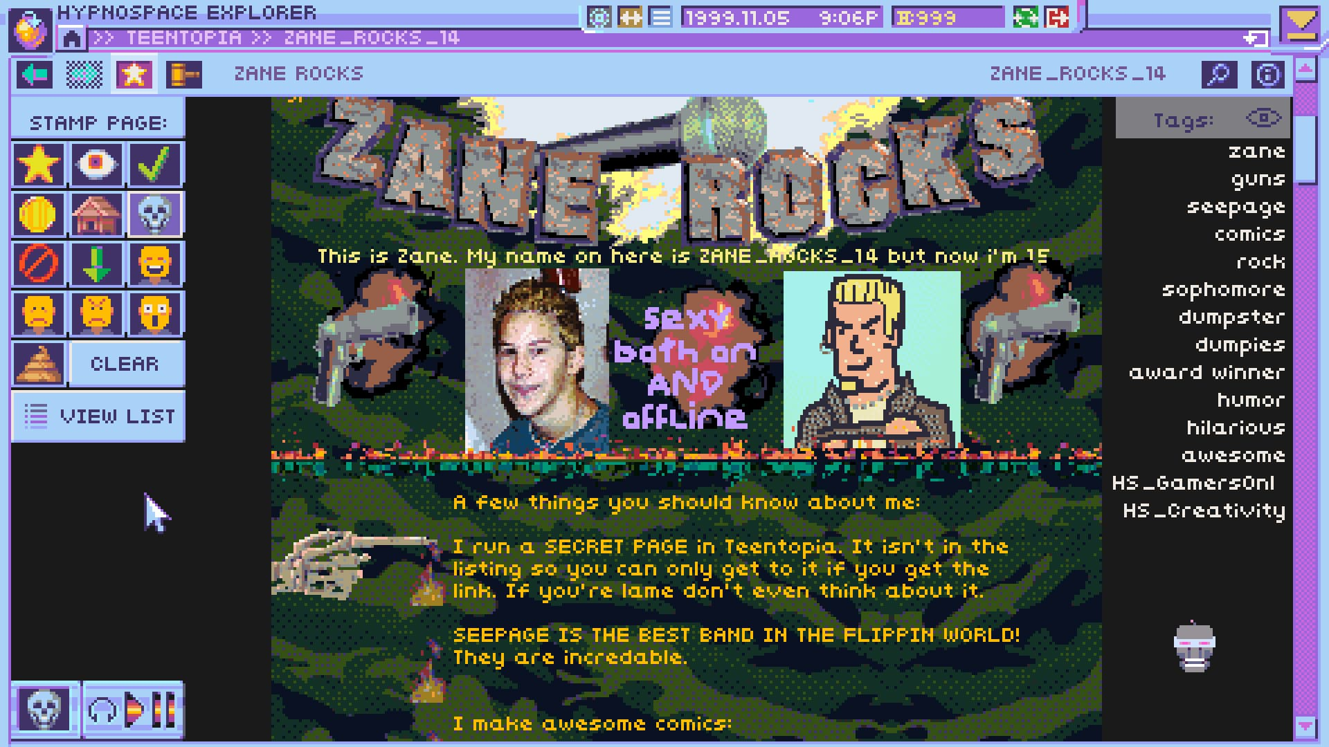 I sort of imagine myself a cool, hackery t1mageddon — but, no, I was very much (and regrettibly) a ZANE_ROCKS_14 in the year 1999, and boy is that a thorough and laser-targeted roast.